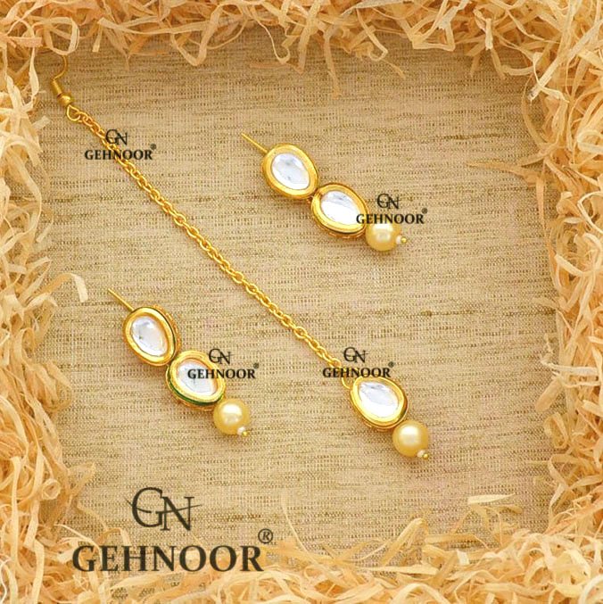 Double Uncut Kundan Earrings with Maangtika