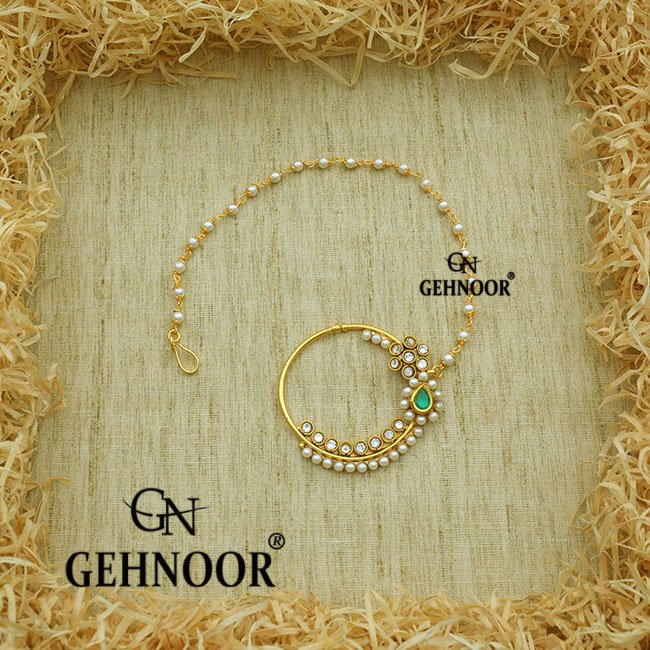 Emerald & Stone Studded Pearl NoseRing/Nath