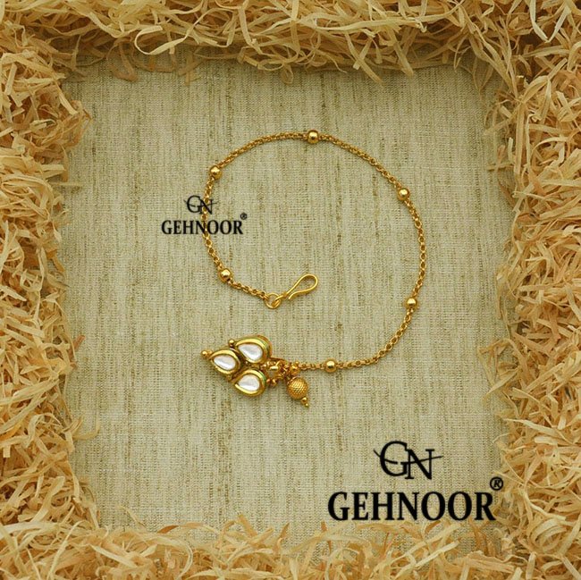 Kundan NoseRing/Nath with Gold Chain [Clip On]