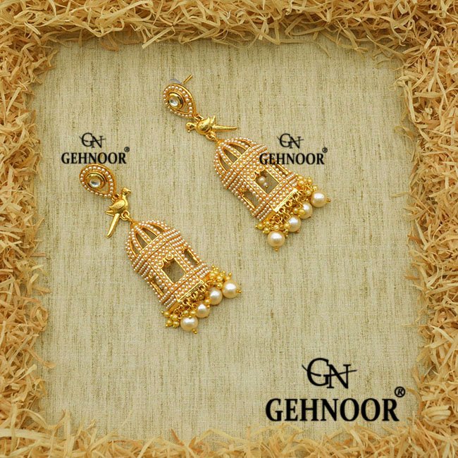 Peacock & Jharonka Style Kundan Earrings with Fine Pearls