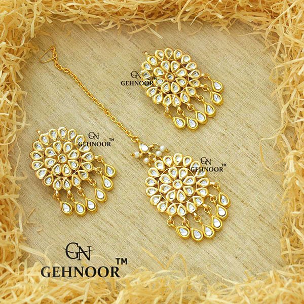Kundan Round Stud Earrings with Drops along with Maangtika