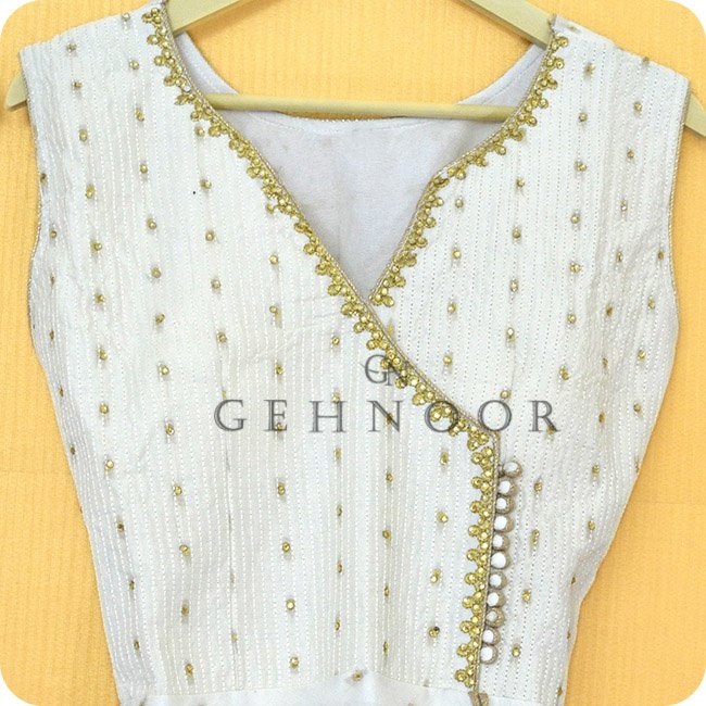 All Clothing are Fully Stitched. We do not offer Custom Fitted Clothing. All Clothing are tailored according the standard sizes as mentioned and a nominal fitting at your end is sufficient to make them Custom-Fitted. Similarly the length of the Bottom/Lehenga/Pant can be fitted according to individual requirements.